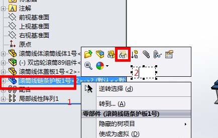 2、选择装配体中一零件,点击鼠标右键,如下图进行选择