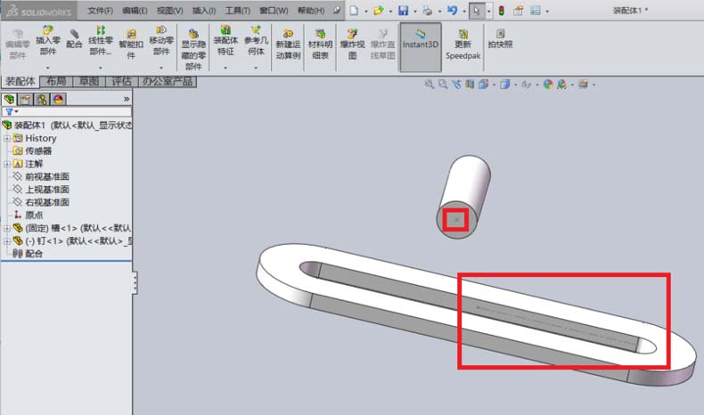 2、经过两次重合配合,使圆棒只能延槽口运动,当然此时还没有限制圆棒的运动范围。