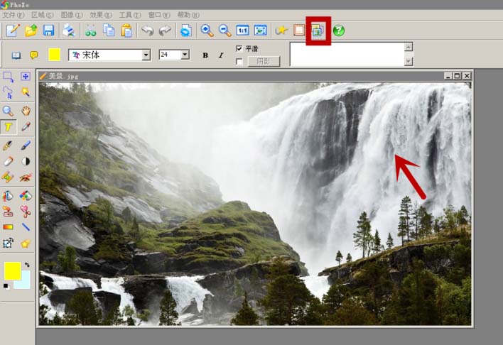 4、图片出现在phoxo的操作页面上。在单击特效库图标。