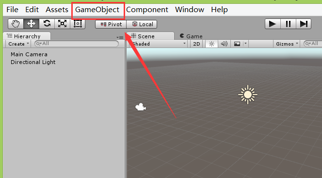 2、在该界面内找到gameobject菜单,如图所示: