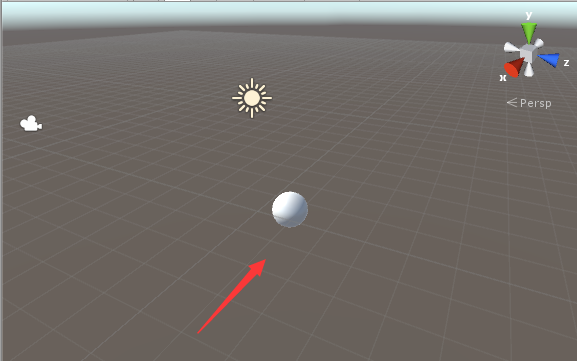 4、点击sphere选项,在scene内就创建了一个sphere物体,如图所示: