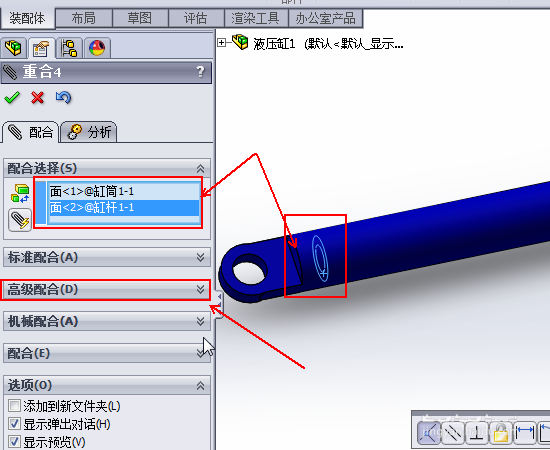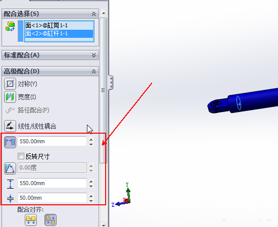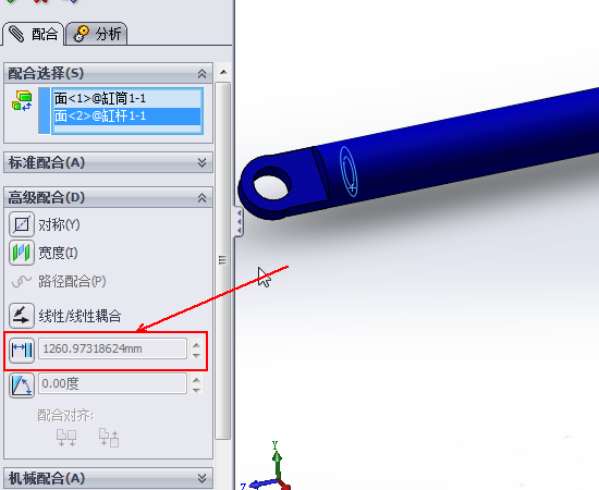 7、设置完成后确定,保存为装配体。在需要安装油缸的装配体中插入油缸的装配体。