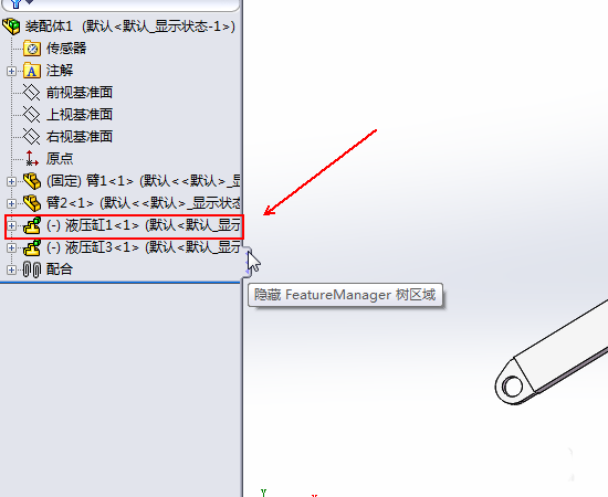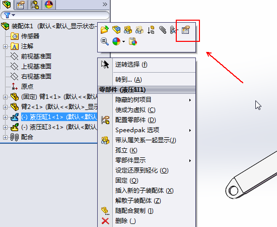 8、单击左边的装配树中的液压缸,弹出如下选项框。