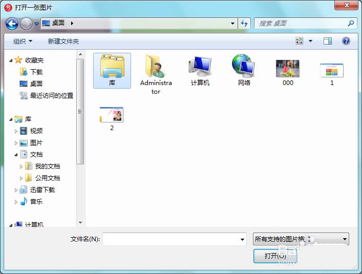 3、点击打开选项,弹出打开一张图片对话框,如图所示: