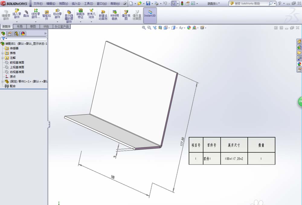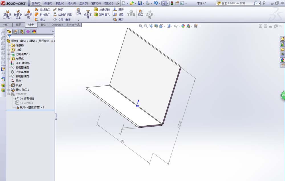5、上面的设置好后,一定要记得将钣金件折叠回去,否则装配关系会混乱的。当然如果大家不喜欢窗口中的灰色尺寸标注,可以点击视图-所有注解将尺寸标注进行隐藏。