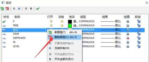 5、如果想对DXF图层进行修改操作,只需要右击对应的图层列,即可从其右键菜单中选择“删除”项对其进行删除。