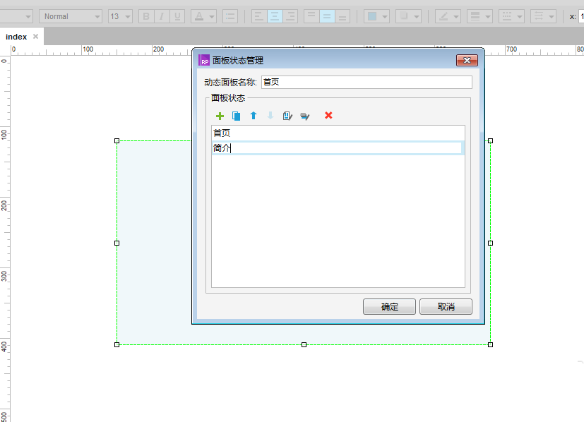 3、选中该动态面板,双击它打开面板状态管理窗口,设置两个面板状态,如下图所示: