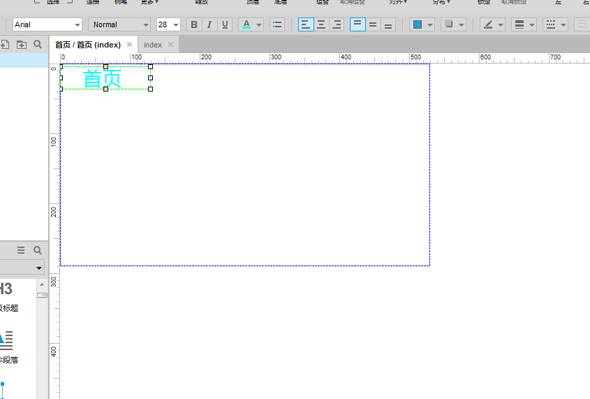 4、打开面板状态管理,双击“首页”面板状态,移动一个文字标签到界面上,修改内容,如下图所示:
