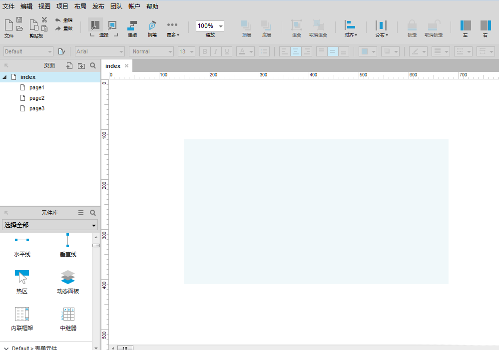 1、双击打开Axure RP 8软件,查看动态面板的位置,如下图所示: