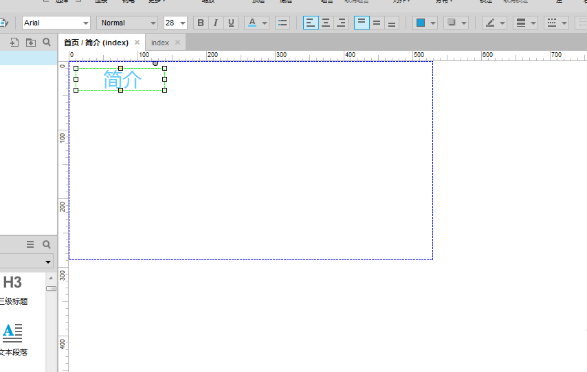 5、打开面板状态管理,双击“简介”面板状态,移动一个文字标签到界面上,修改内容,如下图所示: