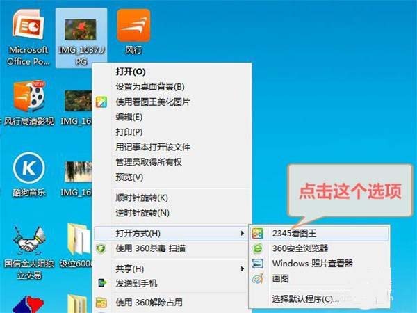 2、选择需要处理的图片,点击鼠标右键,在“打开方式”展开菜单中点击“2345看图王”选项。