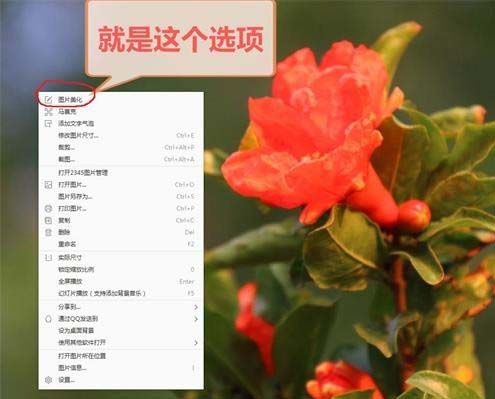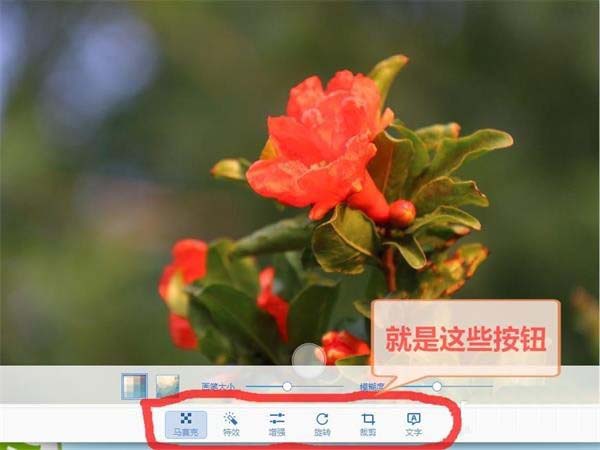 3、在打开的图片中点击鼠标右键,在展开菜单中点击“图片美化”选项,图片下方会出现“马赛克”、“特效”、“增强”、“旋转”、“裁剪”、“文字”这几个图片处理按钮。