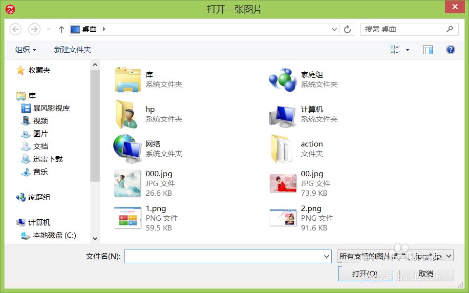 3、点击打开选项,弹出的一种图片对话框,如图所示:
