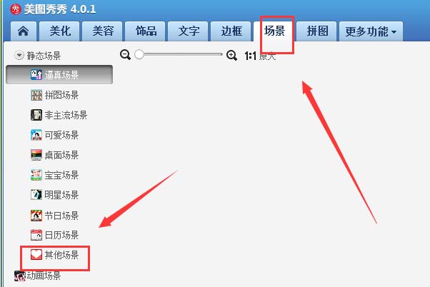 5、在该界面内找到场景选项,点击场景选项在其内找到其他场景选项,如图所示: