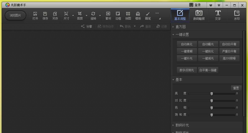 1、打开光影魔术手这款软件,进入光影魔术手的操作界面,如图所示: