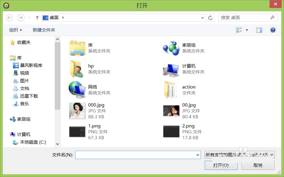 3、点击打开选项,弹出打开图片对话框,如图所示: