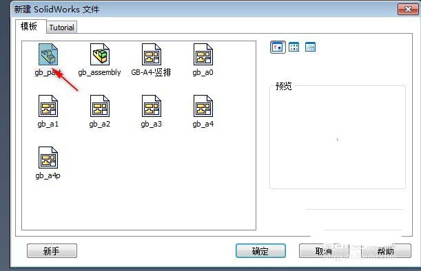 1、新建模型文件。选择下拉菜单【文件】-【新建】,在系统弹出的“新建SolidWorks文件”对话框中,选择“零件”模型,单击确定。