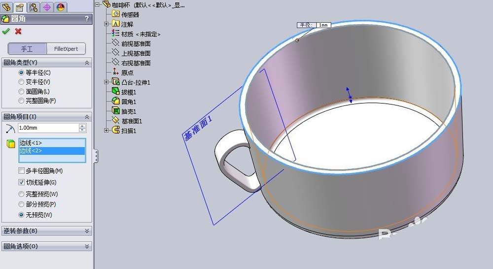 solidworks中建模很方便,关键是很简单,今天我们就来看看solidworks绘制一个水杯的教程,很简单,需要的朋友可以参考下。
