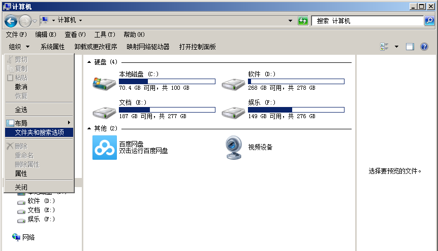 1、点击右上角组织按钮--文件夹和搜索选项,弹出下面的窗口。