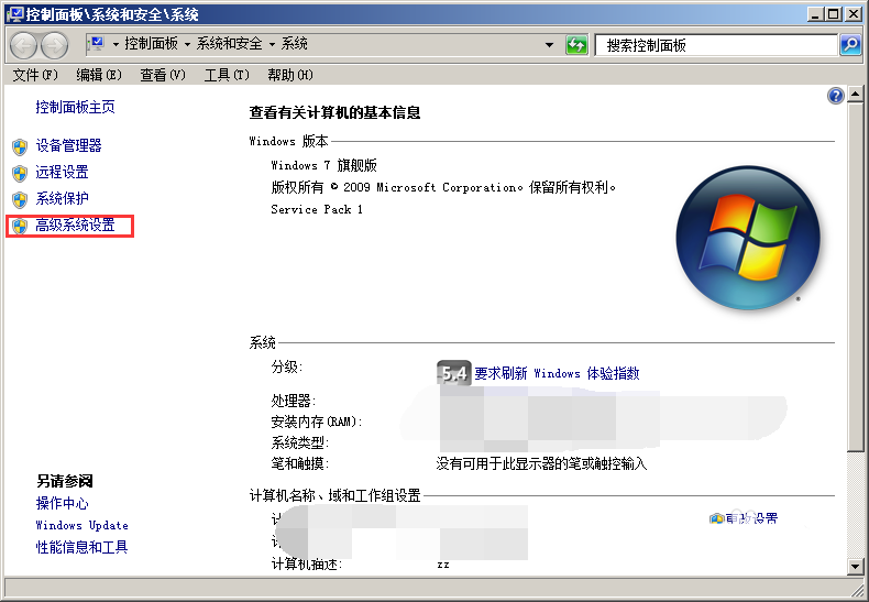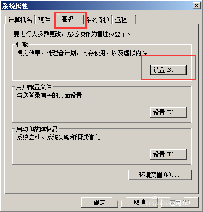 3、右键点击我的电脑--属性--高级系统设置--高级--设置。