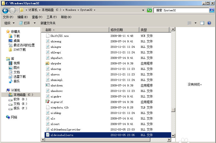 7、在整台机器中搜索sldwinshellextu.dll 和 sldthumbnailprovider.dll这两个文件,并将这两个文件拷贝到c:\windows\system32文件目录下 。