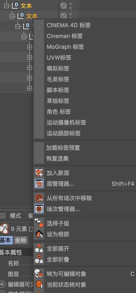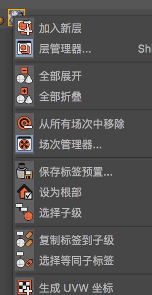 5、选中C掉后生成的UVW标签和选集标签,删掉!