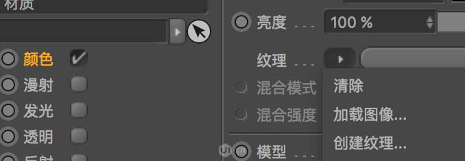 7、新建材质,在颜色里面加载贴图图像,这一步为了编辑UV贴图,你也可以直接使用Cheese的贴图,把这个材质赋予文本,调整下纹理标签,重点是投射选择平直
