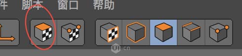 9、使用快捷键:U-I,反选,点击C4D右上角的界面下拉菜单,选择:BP-UV Edit,进入UV编辑界面