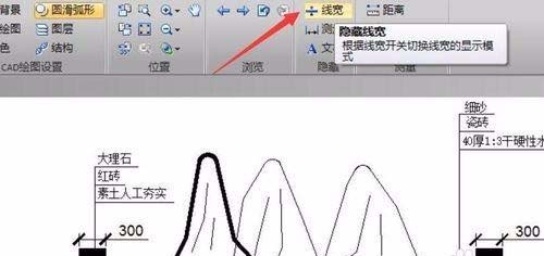3、如图所示,在默认情况下,我们可以看到线宽,由于线宽的显示,可能造成无法正常查看有关图纸的更多细节部分。