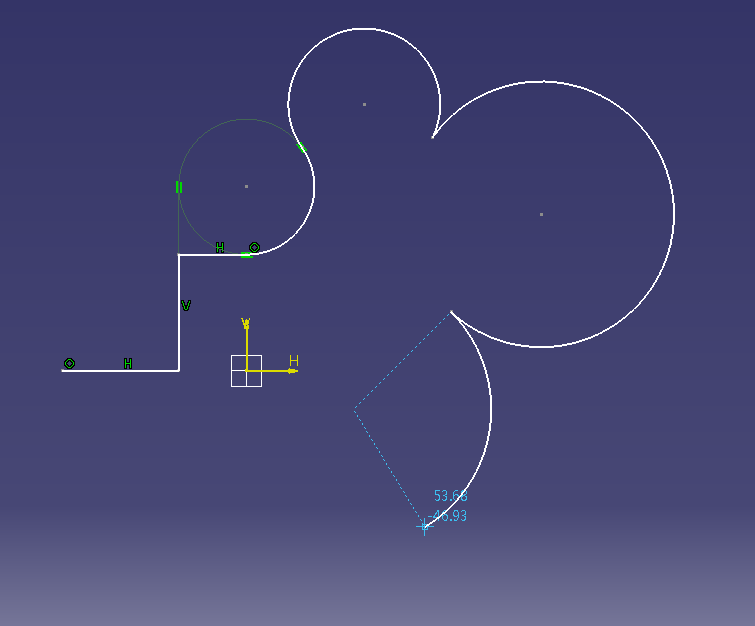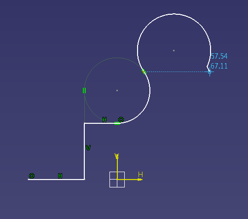 6、绘制两个非相切圆弧,另外两个图标分别为直线与相切圆弧绘制按钮,只是我们可以直接用鼠标调用这两个按钮,而不用选择。