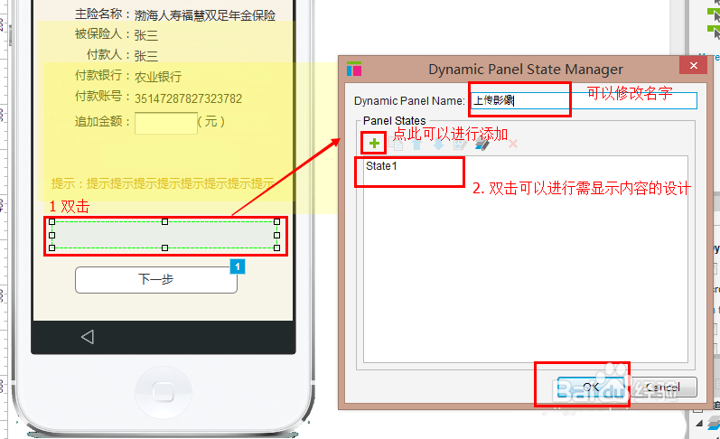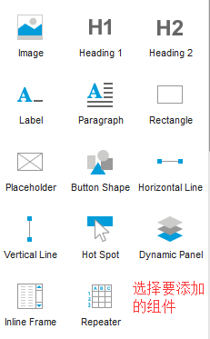 3、添加弹出框,其中先使用使用到dynamic panel 组件,然后在进行添加