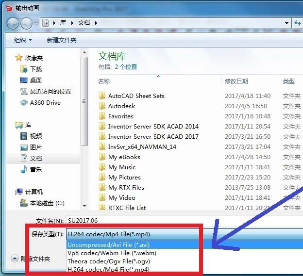 8、在“输出动画”窗口下方还可以修改视频的“保存类型”,默认的为“mp4”格式,常用的还有“avi”格式,另外两种格式不推荐选用(详见下方图片红框内);
