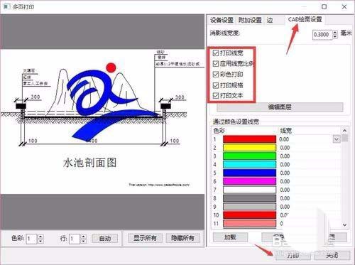 5、切换到“CAD绘图设置”界面中,通过选择以设置想要进行打印的CAD图纸内容。如图所示,点击“打印”按钮即可实现批量多页分开打印输出操作。