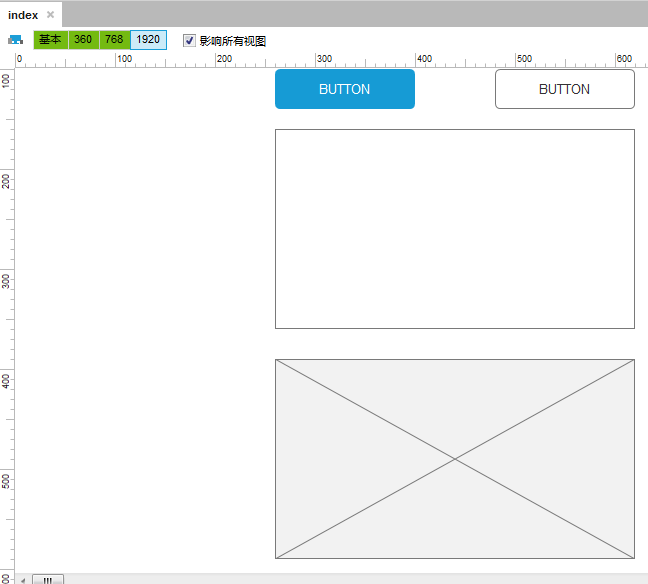 2、再次在基本元件里拖曳两个按钮到画布上,放在矩形框上方,如下图所示: