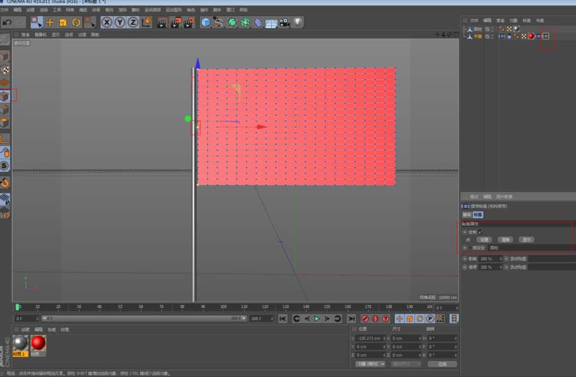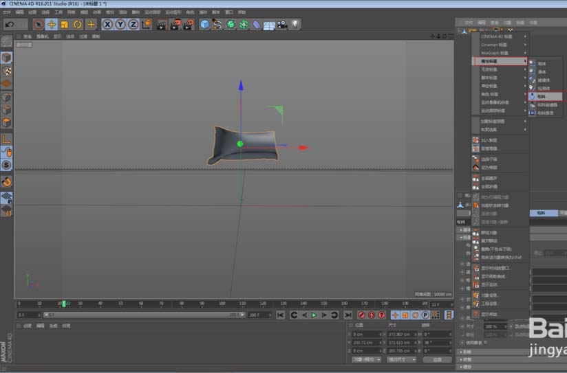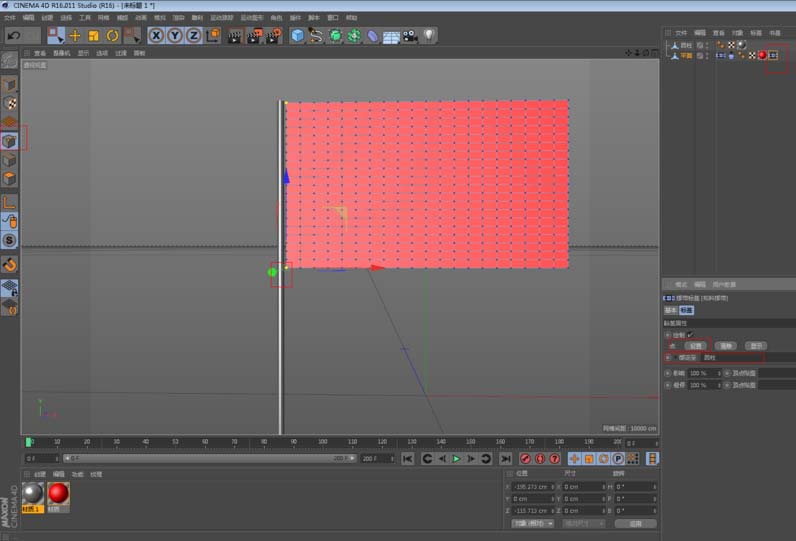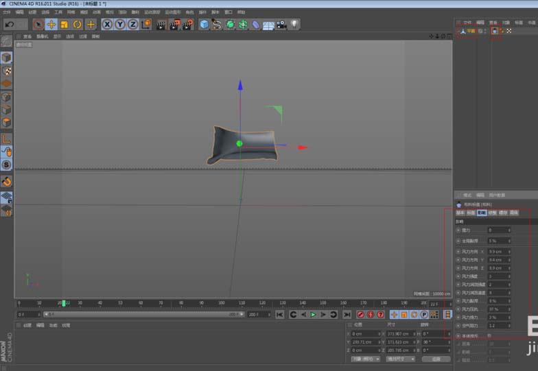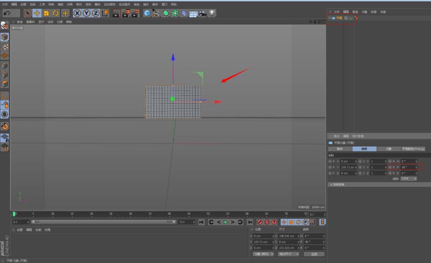 2、然后,将平面转换为可编辑对象,并给它添加模拟标签里的布料,这时你播放就会看到旗帜在往下掉落。