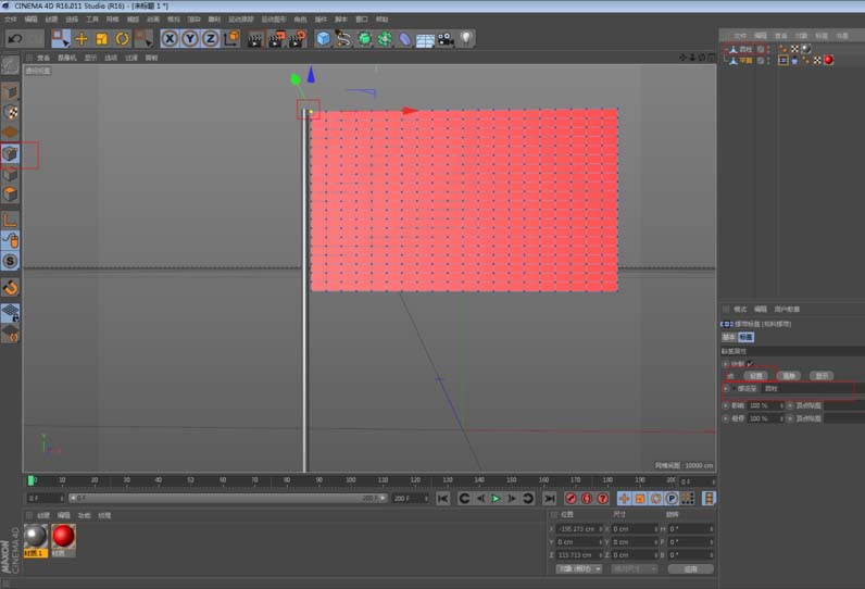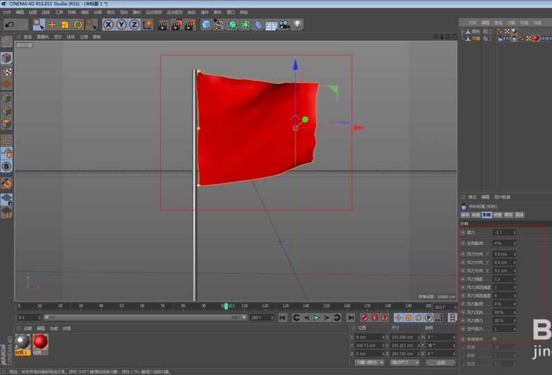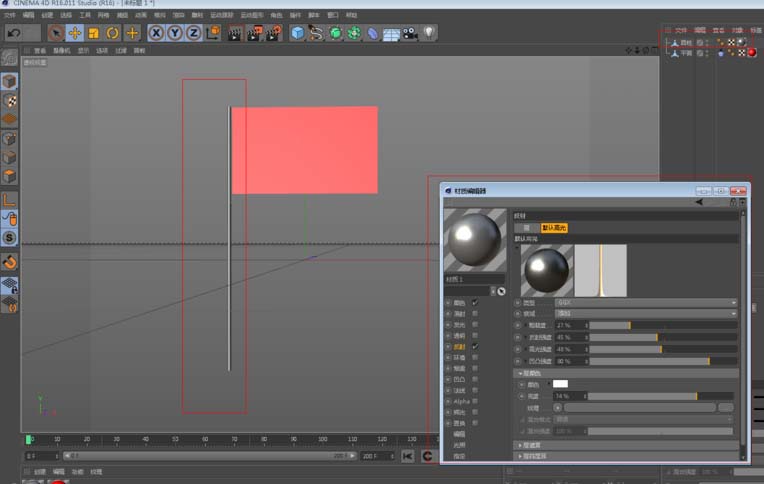 4、然后,给旗帜上个简单的红色材质(你可以用贴图或者加上其他图案做的更精细)。