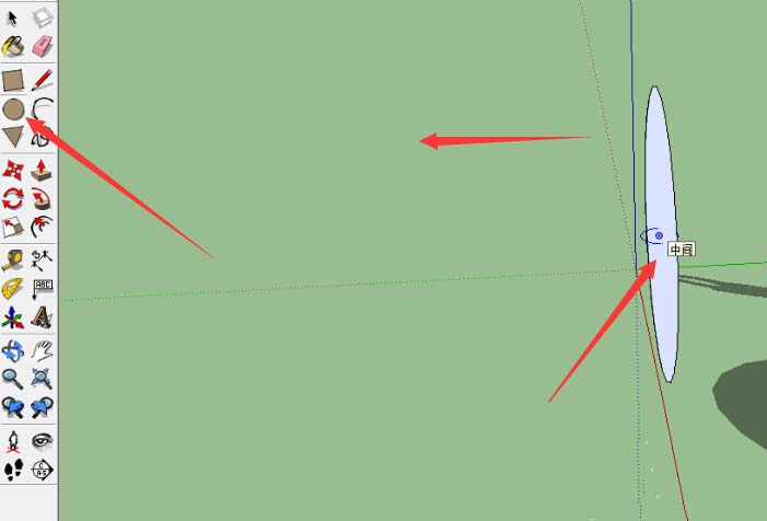 4、选取画圆工具,以之前画的圆的中心为中心,在水平面上画圆,通过控制边,使画的圆跟之前的圆一样大小。