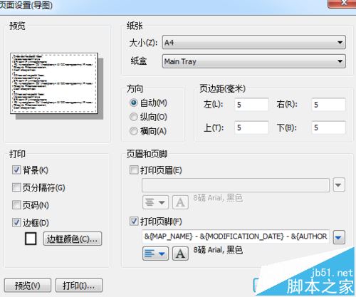 3、点击打印,打印导图,或点击预览,核实页面设置。
