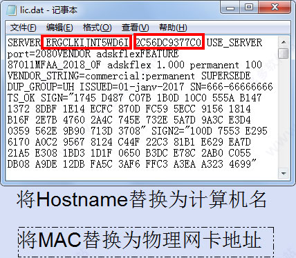 9、将“Hostname”替换为计算机名,将MAC替换为物理网卡地址(此处已经替换完毕,计算机名和MAC查看方法在下面教程中)