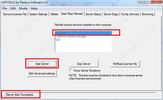 11、点击“Start/Stop/Reread”项,点击“Start Server”启动服务,如图提示载入成功