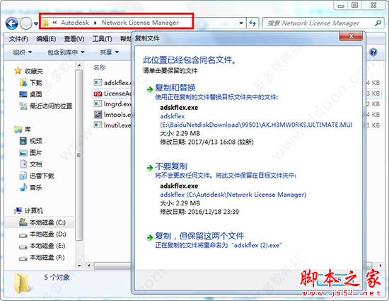 6、安装完成后,将“adskflex.exe”复制到C:\Autodesk\Network License Manager目录下覆盖源文件