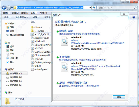 7、将“adlmint.dll”复制到C:\Program Files\Common Files\Autodesk Shared\CLM\V5\MSVC14目录下覆盖源文件