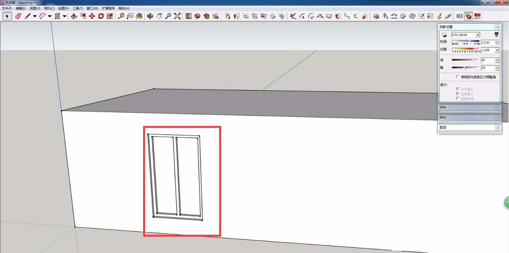 4、适用拉伸工具,将窗框与玻璃与墙体的进退关系表达清楚。