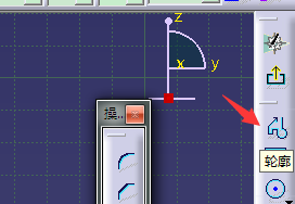 3、选择YZ平面,选择轮廓,绘制一条轮廓线;