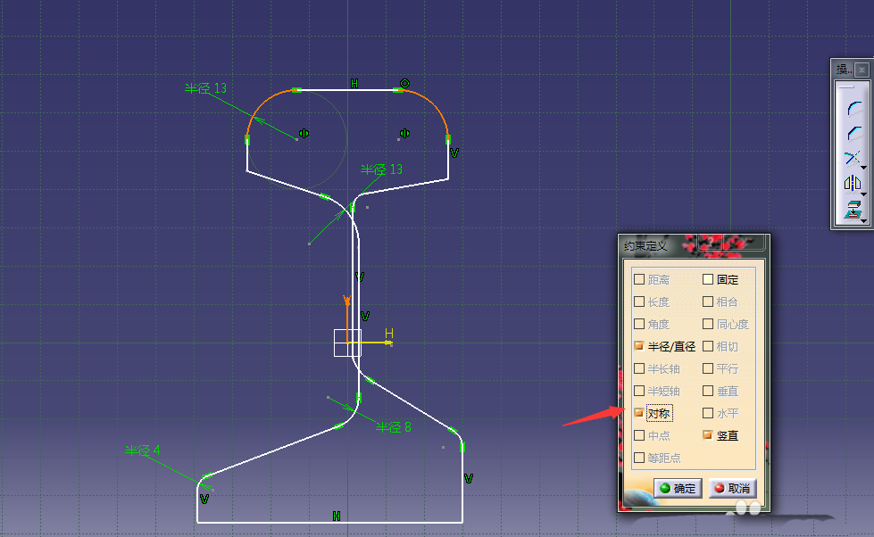 4、在绘制要的轮廓线上进行约束;