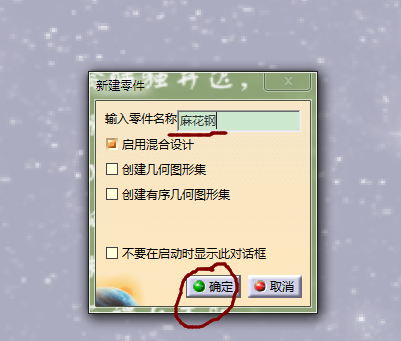 2、用快捷键CTRL+N建立一个PART文件,命名为麻花钢;