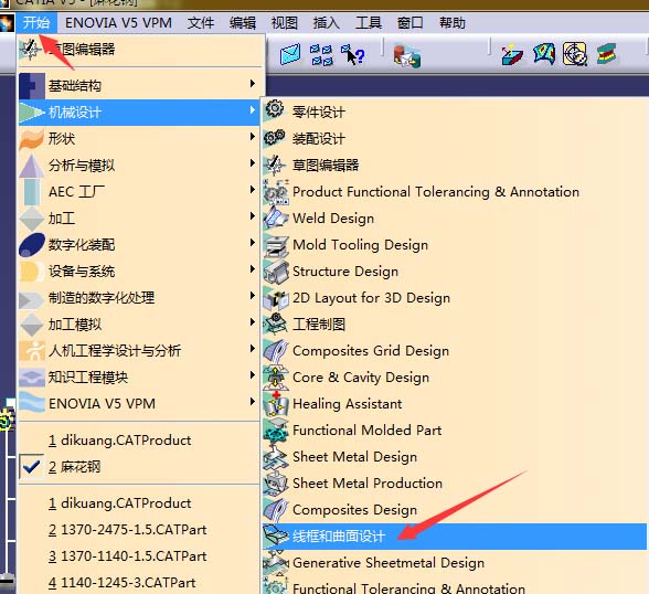 1、在开始程序种找到CATIA软件程序,左键单击打开程序;