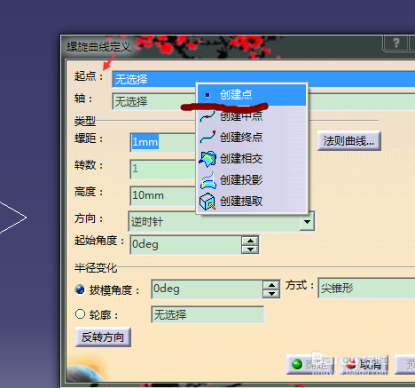 5、在“开始”选择零件设计,选择肋,轮廓选择草图1,中心曲线选择螺旋线2,控制轮廓选择拔模方向,选择Z轴,确认;