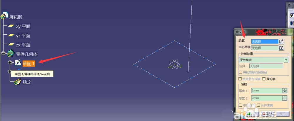 用CATIA中的线框与曲面设计绘制麻花钢,用到草图,以及肋。