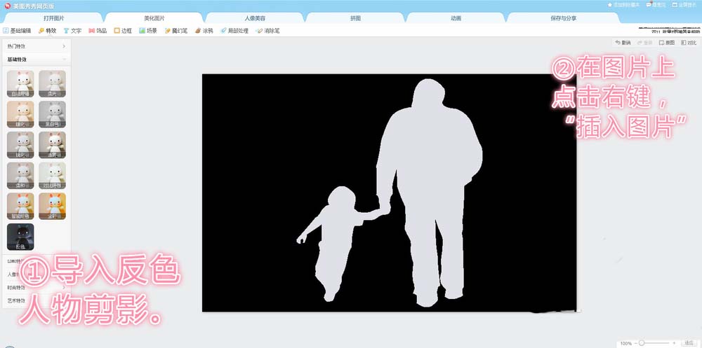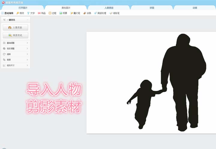 1、把人物剪影素材导入到美图秀秀网页版。